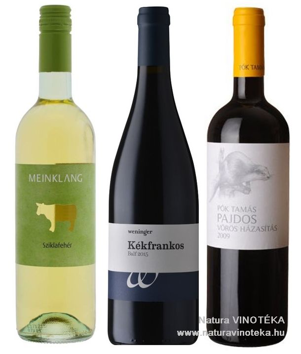 (Meinklang Sziklafehér 2015, Weninger Kékfrankos 2015, Pók Tamás Pajdos 2011)